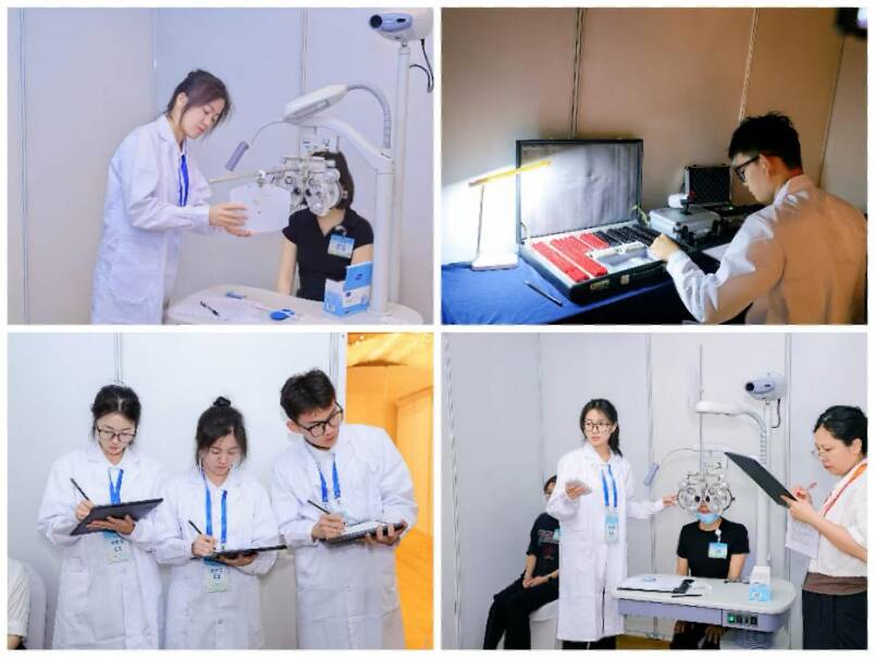 本次大赛设置了四个竞赛模块,包括基础检查操作、影像资料判读、视功能评估和临床综合分析,共分六个考站,涵盖了眼部常规检查、眼底影像识别、双眼视功能评估、屈光状态测量以及典型病例分析(含接触镜验配与双眼视功能问题分析)等核心内容,整体考察内容贴近临床实际,考核方式严格,强调知识运用的深度和技术操作的准确性,是对参赛学生综合素养的全面检验。